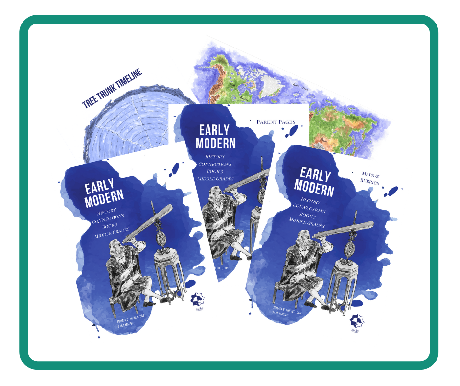 This Third book of History Connections covers the Early Modern era and integrates Islamic history. In addition, it teaches important skills to students, such as note taking, outlining, concept mapping, biographies, PowerPoint presentations, posters, and more. This program is most suitable for middle grades: grade 7 & 8.