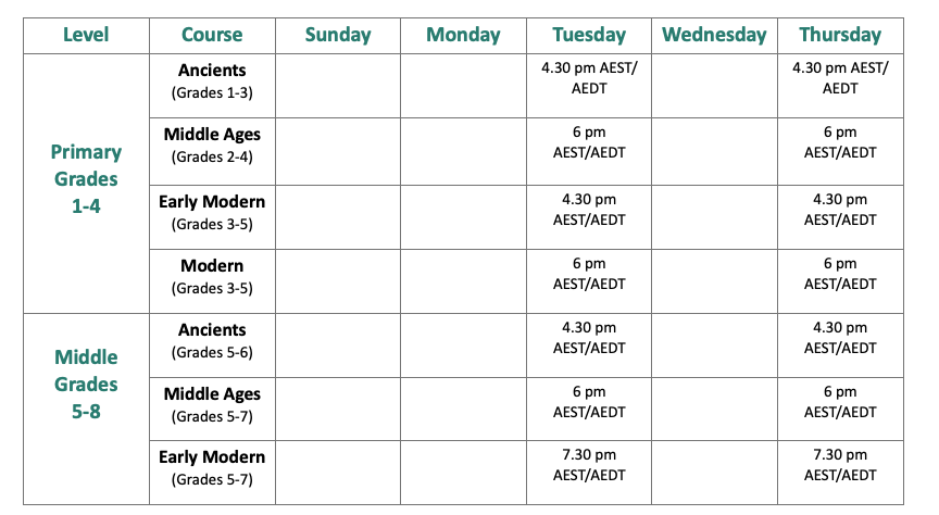 Download the schedule Australia online History Class Schedule 2026.pdf Download the academic calendar Academic Calendar Australia 2026.pdf |