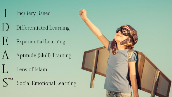 IDEALS stands for Inquiry Based Learning, Differentiated Learning, Experiential learning, Aptitude Training, Lens of Islam, and Social-Emotional Learning .